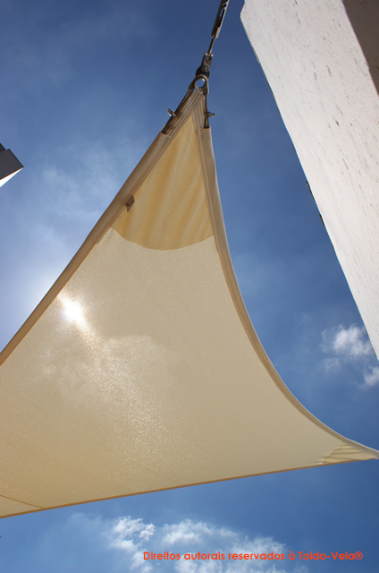 Foram instaladas 3 velas tensionadas com material da Gale Pacific, Commercial®95 na cor Natural.